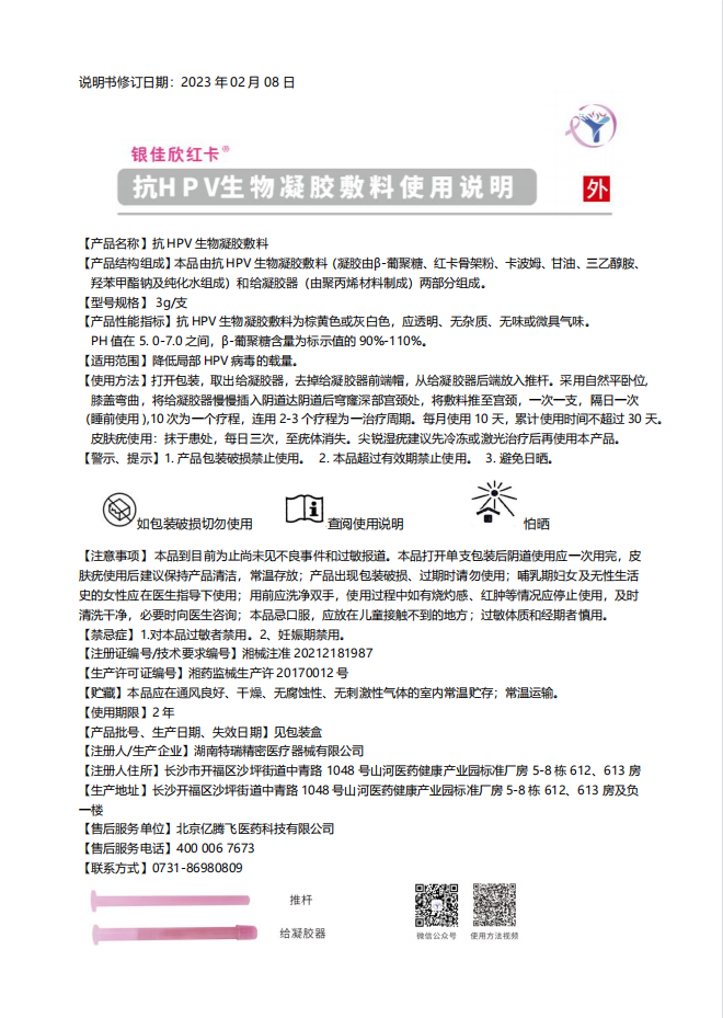 北京亿腾飞医药先后与江西永祥药业和湖南特瑞精密医疗器械有限公司签署战略合作协议,将公司最新研究成果进行医疗转化。分别拿到了药监局颁发的银佳欣红卡—抗HPV生物凝胶敷料的产品注册文件,适用范围:降低局部HPV病毒的载量。